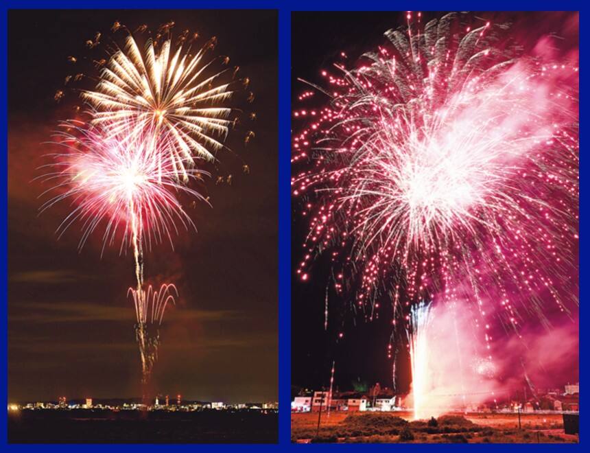 県内各地で新型コロナウイルスの影響で多くの事業が中止となる中、早く終息し地域の活気が戻るよう大輪に願いを込めて医療従事者への感謝の気持ちも表しました。