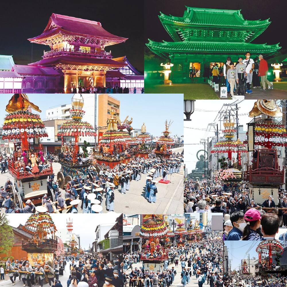 国重要有形・無形民俗文化財で国連教育科学文化機関(ユネスコ)の無形文化遺産「高岡御車山(みくるまやま)祭」が1日、高岡市中心部で行われ、絢爛(けんらん)豪華な山車(やま)が歴史都市・高岡を彩りました。全7基の山車がそろって巡行するのは4年ぶりです。