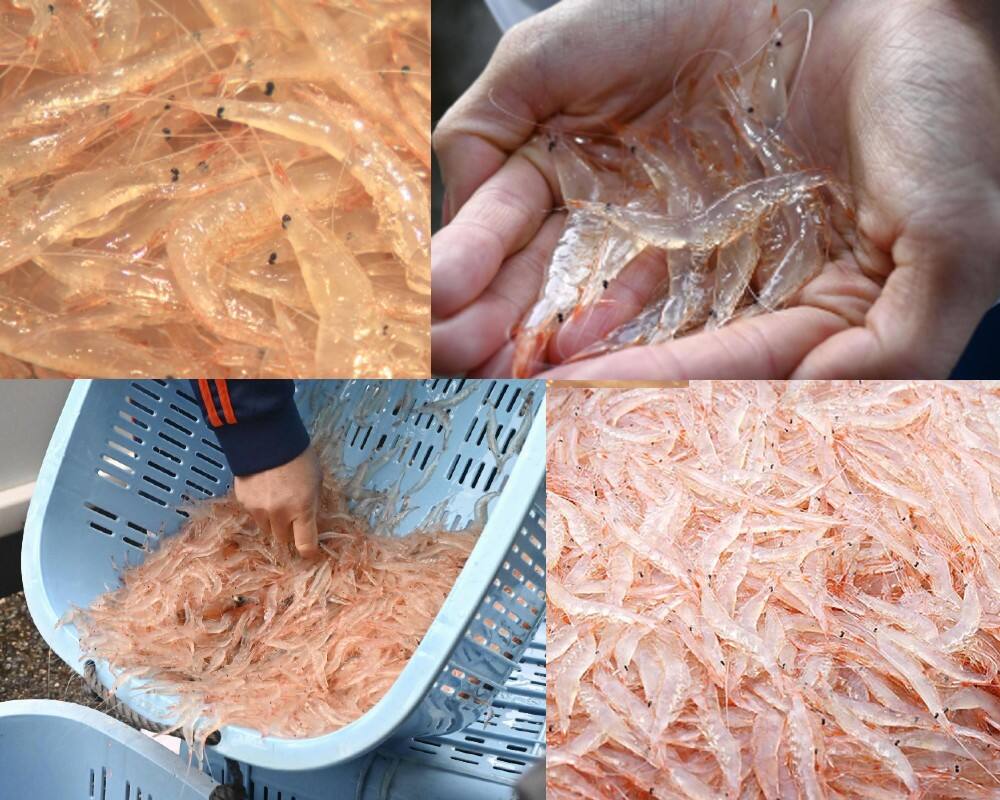 「富山湾の宝石」と呼ばれるシロエビの漁が1日解禁され、射水市の新湊漁港で初水揚げされました。透き通った淡いピンク色の初物が漁港に運ばれ、春の風物詩に浜が活気づきました。