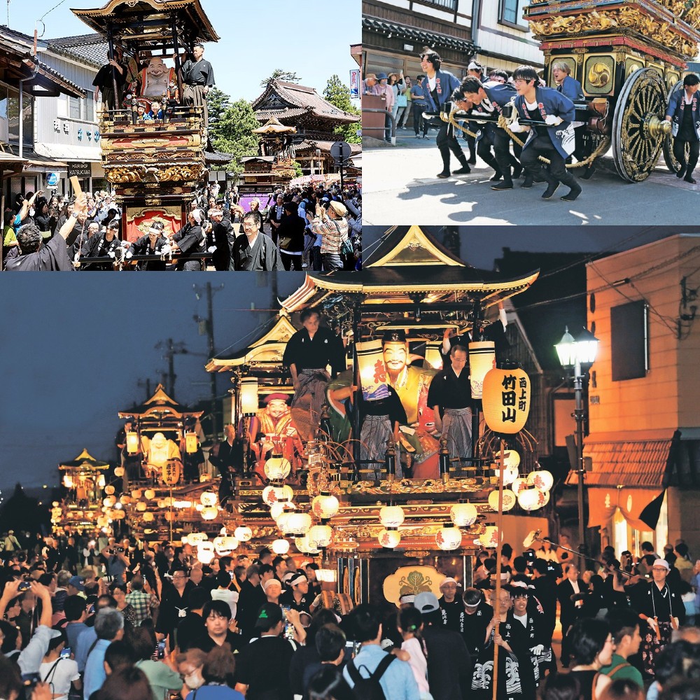 栄華を極めた江戸時代の町人文化を伝える「越中八尾曳山(ひきやま)祭」が3日、富山市八尾町中心部で行われ、青空の下、絢爛(けんらん)豪華な装飾を施した曳山6基が坂の町を優雅に練り回り、夜には装飾を数百個のちょうちんに付け替えた曳山が巡行し、一帯が幻想的な雰囲気に包まれました。