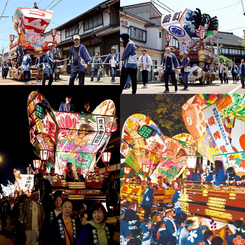 福野夜高祭は、1652(慶安5)年の大火で焼け落ちた町を再興する際、行燈をともして伊勢神宮の御分霊を神明社に迎えたことが起源とされる。県指定無形民俗文化財で、日本ユネスコ協会連盟の「プロジェクト未来遺産」にも認定されています。