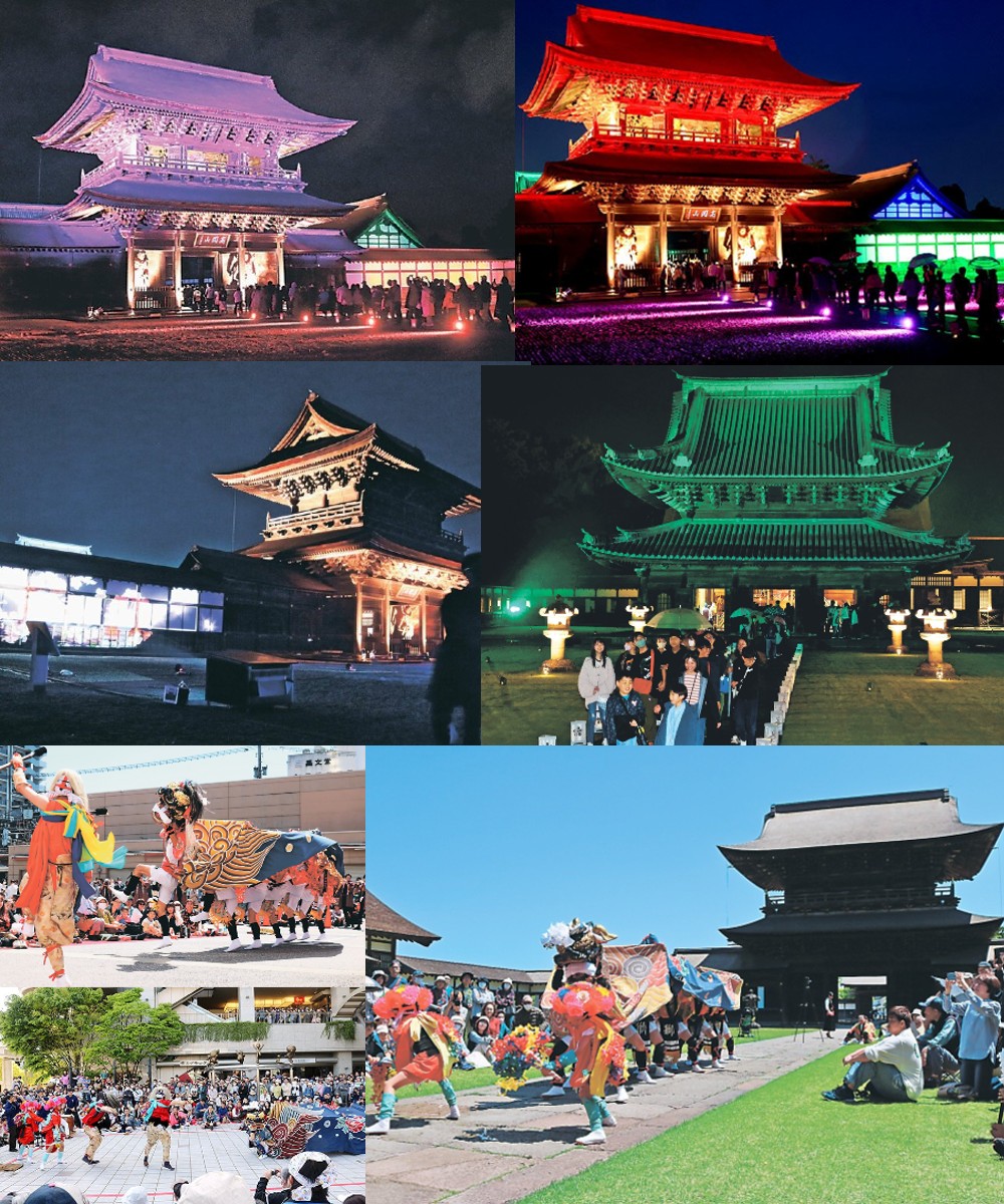 高岡市の国宝瑞龍寺を舞台にした「春のライトアップと門前市」が1日、大勢の来場者が幻想的に照らし出された大伽藍(がらん)に見入りました。そして高岡獅子舞大競演会は3日、高岡市中心部で開かれ、高岡、射水両市の6団体が笛や太鼓、威勢のいいかけ声を響かせ、勇壮な演舞を繰り広げました。