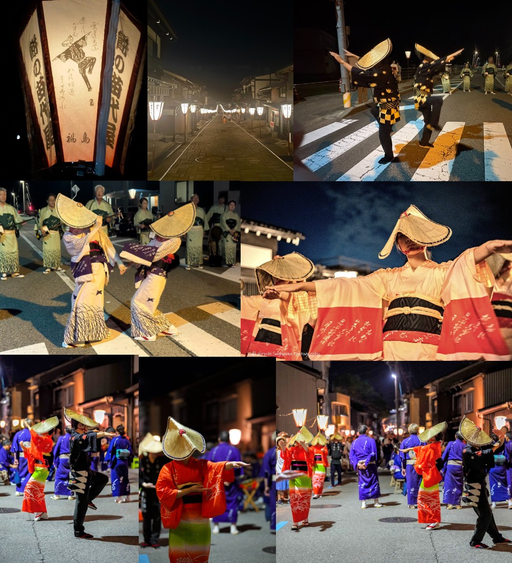 最終日の終盤、踊り手さんは編み笠を外して名残惜しむように優美高妙に踊りを披露いたし町流し、観光客にも踊り体験伝授して輪踊りの中に入ってもらい最終日を過ごしました。