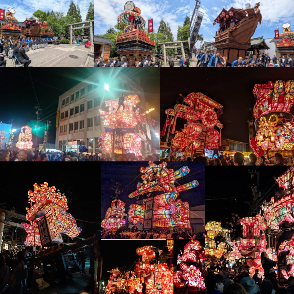 富山県内で最も古く、歴史のある山車(曳山)祭りで、御車山(みくるまやま)と呼ばれる7基の山車が優雅な囃子とともに高岡の旧市街を巡行します。