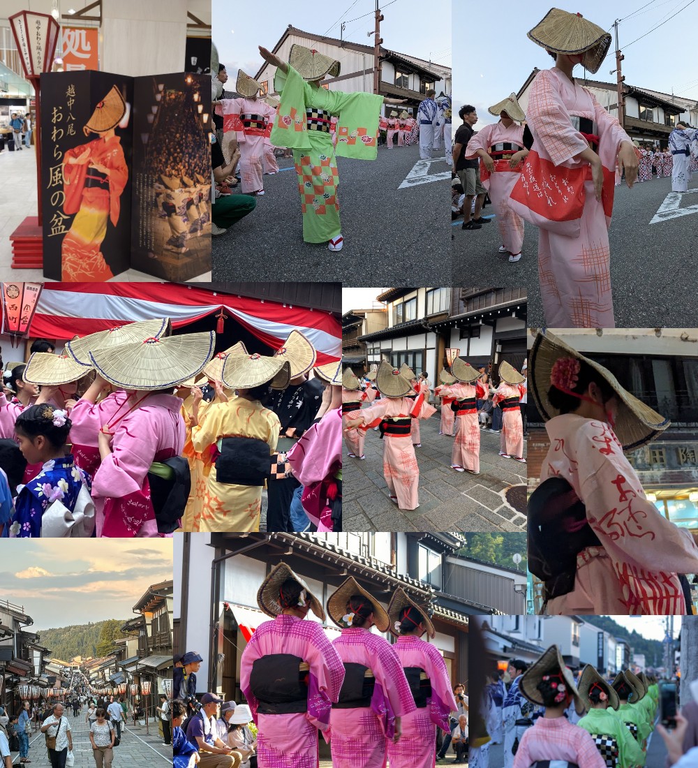 秋の訪れを告げるおわら風の盆は、9月1日~3日で約19万人(マスコミ発表に寄る) 編み笠をかぶった踊り手が胡弓・三味線の音色と唄声に合わせ静かで優美高妙、幻想的な踊りを披露いたしました。そして三日三晩、おわら一色に染まりました。