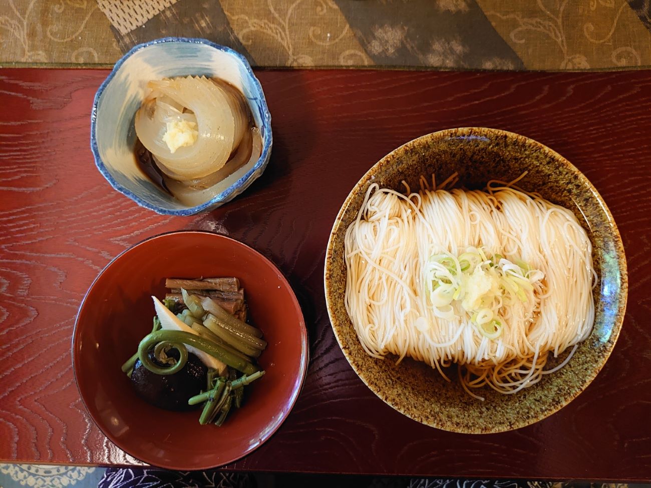 そうめんに金色に輝くつゆをそのままかけ、麺もキレイに整えるのが金龍流。